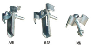C型:由一塊帶雙鉤的上壓板和一支可焊接在支撐構(gòu)件上的M10(或M8)的六角頭螺栓組成。